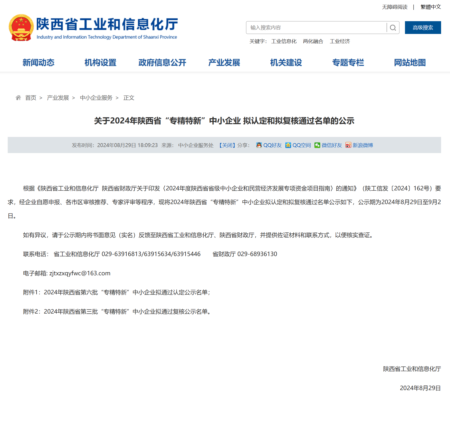 近日,陜西省工業和信息化廳發布了關于2024年陜西省“專精特新”中小企業認定名單的公示通知,西安思強科技股份有限公司憑借強勁的科技研發實力和優秀產品水平脫穎而出,被陜西省工業和信息化廳認定為2024年陜西省“專精特新”中小企業,表明了政府以及行業內外對西安思強科技股份有限公司在新材料行業擁有卓越實力的高度贊揚與肯定。